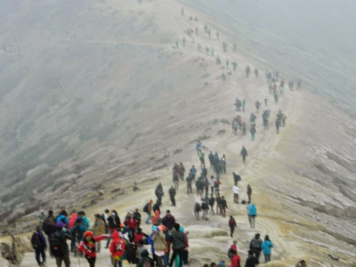 menuju puncak Welirang Kita akan menjumpai para penambang belerang yang
